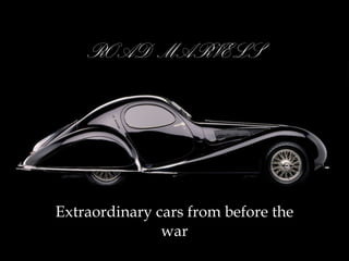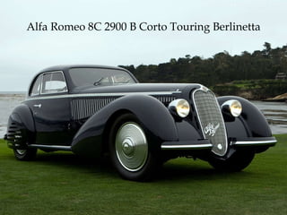 The document highlights a selection of extraordinary pre-war cars, detailing their specifications, unique features, and historical significance. Notable models include the Alfa Romeo 8C 2900 B, Bugatti Tipo 57C, and Napier-Railton Special, each with distinct engineering attributes and limited production numbers. The text expresses admiration for the craftsmanship of these vehicles, underscoring their value and rarity in the automotive world.