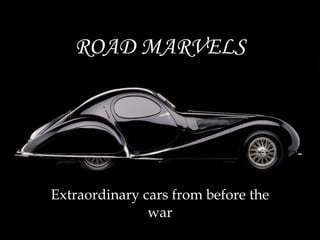 The document summarizes extraordinary cars from before World War 2, providing details on 12 unique vehicles such as the engine size, number produced, notable features, and awards won. Specific cars highlighted include the Alfa Romeo 8C 2900 B Corto Touring Berlinetta, Bucciali TAV 8-32 Saoutchik 'Fleche d'Or' Berline, Bugatti Tipo 57C Van Vooren Cabriolet, and Talbot-Lago T150 C Figoni et Falaschi 'Goutte d'Eau'. The concluding statement remarks on the craftsmanship that went into creating such rare automotive jewels.