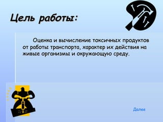 Документ содержит методические рекомендации для практической работы по физике и экологии, направленные на оценку токсичных выбросов от транспортных средств и их влияние на здоровье человека и окружающую среду. Основное внимание уделяется расчету массы токсичных продуктов, сравнительному анализу легковых и грузовых автомобилей, а также анализу загрязнения и его последствиям для здоровья. Работа подчеркивает ответственность каждого человека за состояние окружающей среды и важность соблюдения норм для качества жизни.