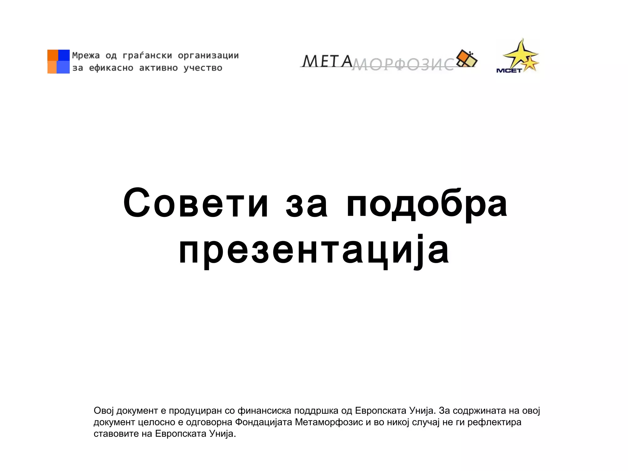 документ целосно е одговорна Фондацијата Метаморфозис и во никој случај не ги рефлектира