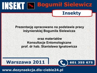 Bogumił Sielewicz www.dezynsekcja.dla-ciebie24.plWarszawa 2011 Insekty Prezentację opracowano na podstawie pracy inżynierskiej Bogumiła Sielewicza oraz materiałów Konsultacje Entomologiczne prof. dr hab. Stanisława Ignatowicza