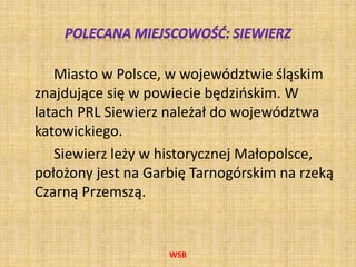 Dzisiaj Siewierz stanowiośrodek turystyczny, leżący w zapleczu