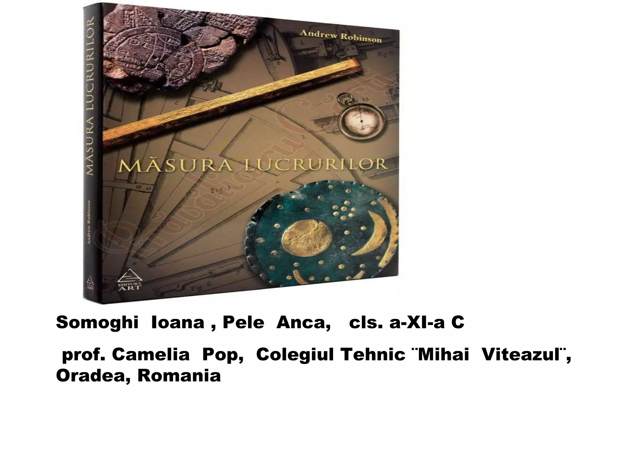 Documentul detaliază unitățile de măsură utilizate de strămoșii geto-daci pentru lungime, greutate, volum și timp, folosind referințe la unități precum cotul, palmă, talant și litru. De asemenea, este prezentată evoluția balanței ca instrument de cântărire, menționând utilizarea sa de către egipteni. La final, se fac referiri la sistemele de unități de măsură utilizate în diverse domenii, precum informația și forța.