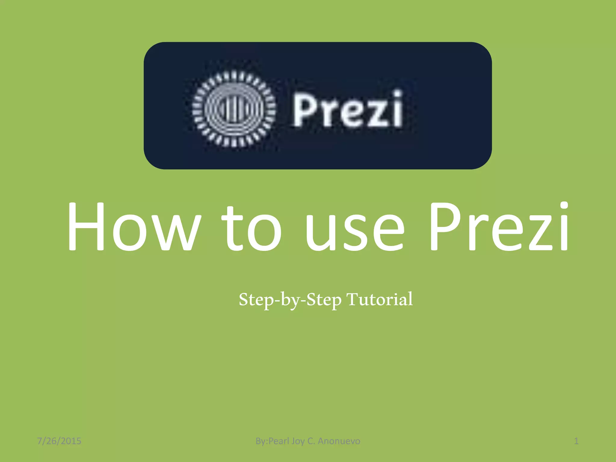 The document provides a step-by-step tutorial for how to use Prezi. It details how to sign up for a free Prezi account, create a new presentation, add frames, images, text, and arrange the content on the canvas. Navigation tools and how to preview and save the presentation are also explained.