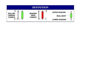 Candlestick patterns provide technical traders with visual clues about investor sentiment and can signal potential reversals in trend. Some key reversal patterns include the hammer, hanging man, morning star, and evening star formations. Traders watch for these patterns to form at support/resistance levels or trendlines as potential entry signals. While candlesticks don't provide price targets, confirming patterns with technical analysis helps traders identify high probability trade setups. Proper risk management using stop losses is also important when trading candlestick reversal signals.