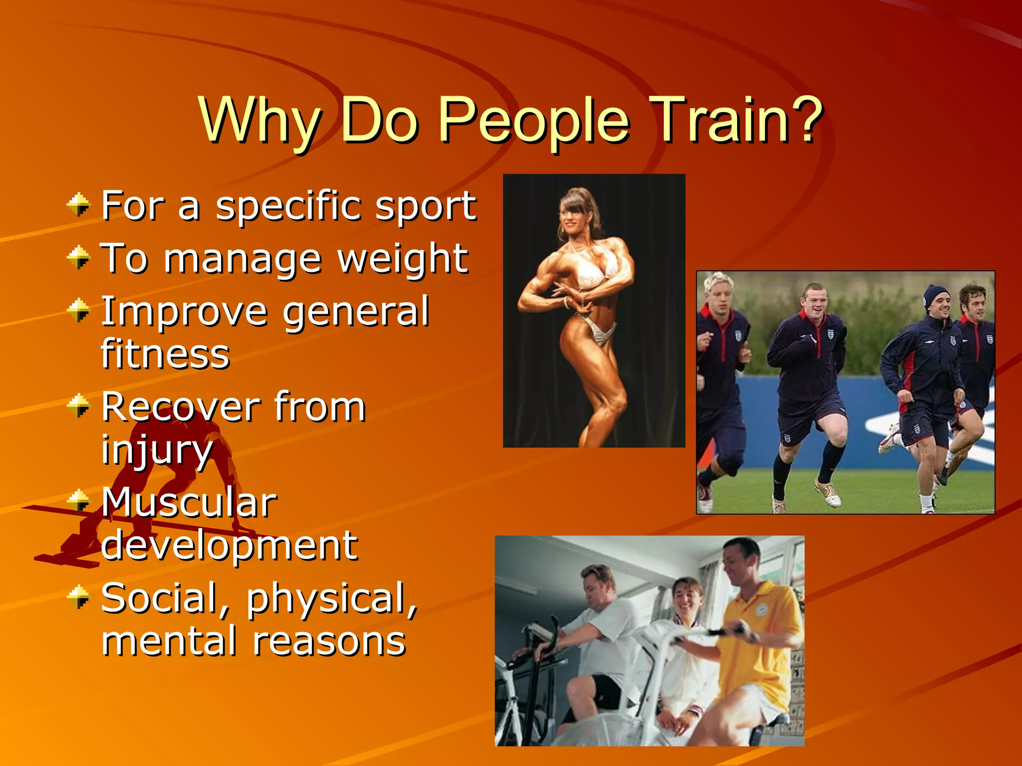 2. It explains the principles of training such as specificity, progression, overload, reversibility, and tedium.