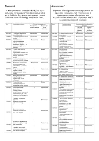 « Электротехника колледжі» КМҚК-ға оқуға Перечень общеобразовательных предметов по