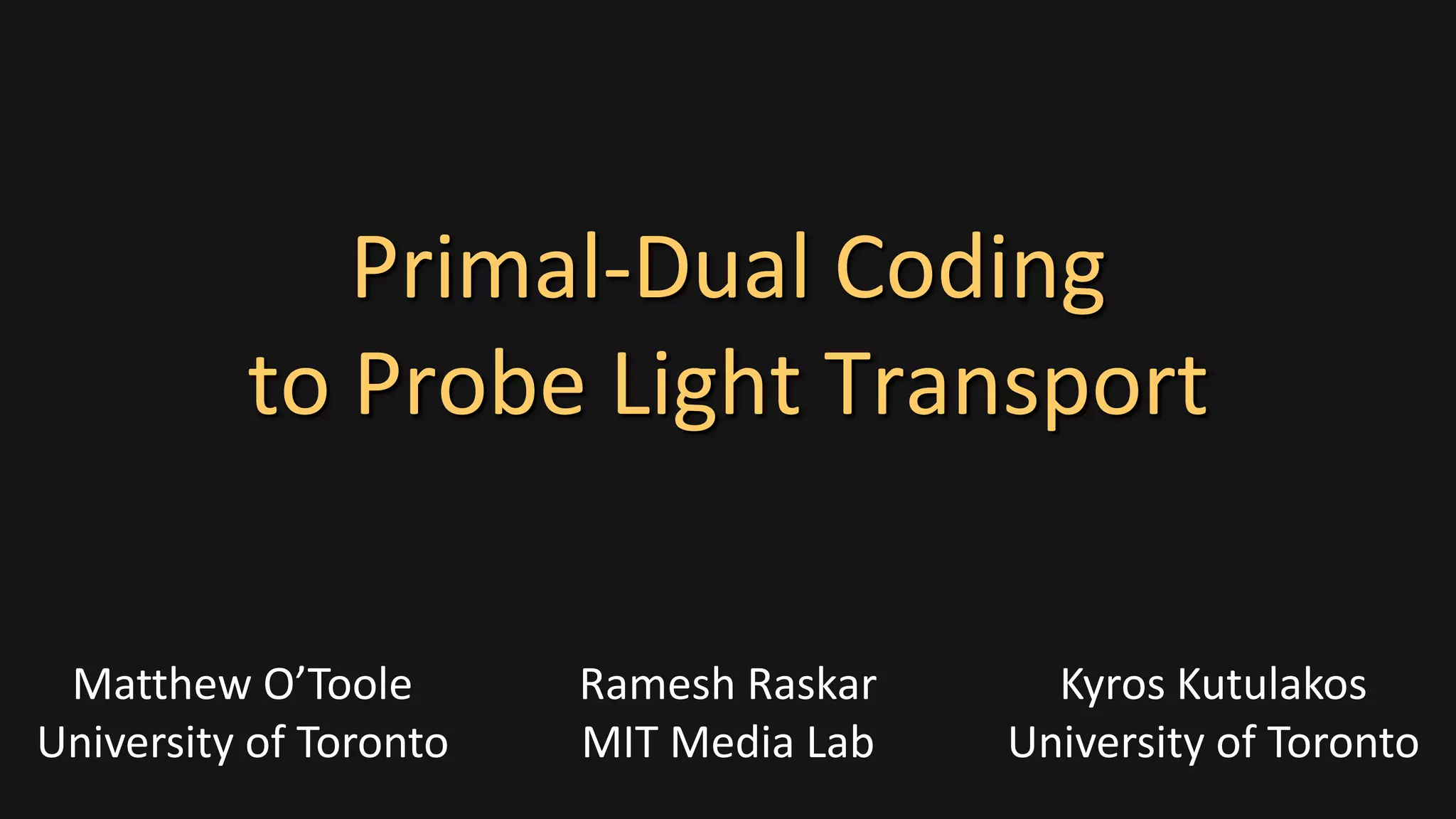 Primal-dual coding photography is a new photographic technique that uses coded illumination and exposure to selectively record user-defined subsets of light paths, generalizing conventional photography. It modulates the contribution of specific light paths using a "probing matrix" of primal codes for illumination and dual codes for exposure over multiple frames. This allows effects like enhancing direct light, capturing indirect light of different ranges, separating light transport effects, and making 3D regions invisible or color-coded in the photo. The technique provides guarantees of optimality and convergence for reconstructing images from the coded photo measurements.
