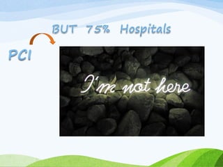 Primary PCI involves performing urgent angioplasty and potentially stenting of the culprit artery in STEMI patients, with the goal of reopening the blocked vessel within 90 minutes of first medical contact. It is the preferred reperfusion strategy when it can be performed promptly by an experienced team. Factors such as patient age, time to treatment, comorbidities, and initial flow in the artery help determine whether primary PCI or thrombolysis is most appropriate. Optimal anticoagulation and antiplatelet regimens along with adjunctive therapies like manual thrombectomy can improve outcomes of primary PCI.