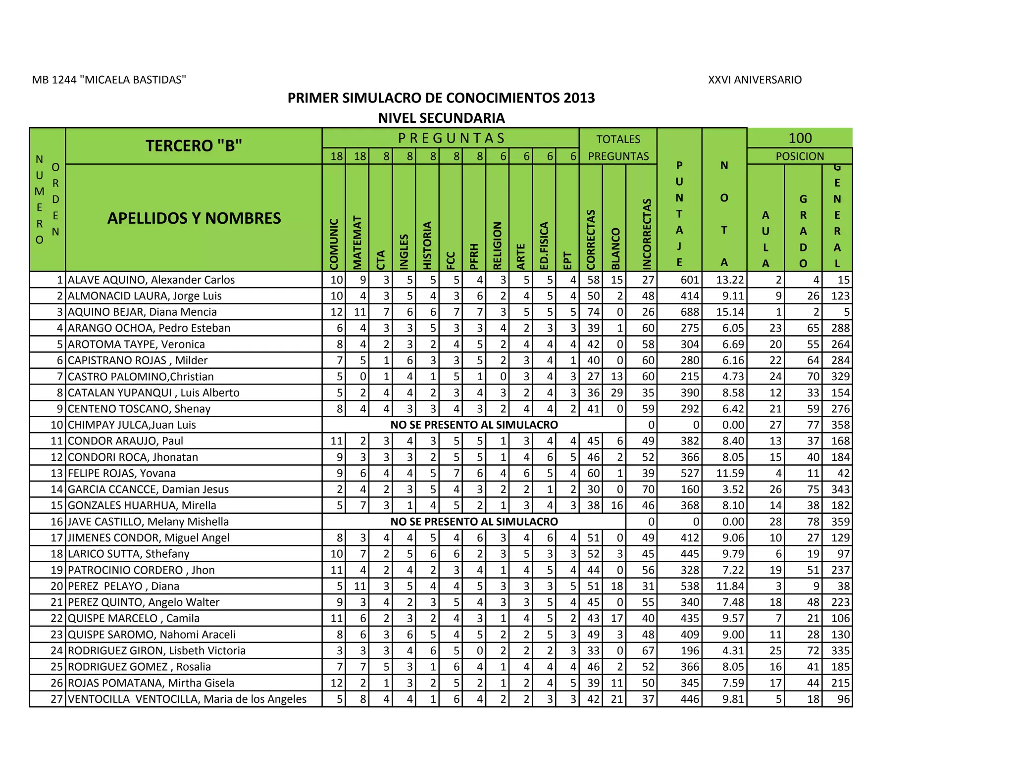 PRIMER SIMULACRO DE CONOCIMIENTOS 2013