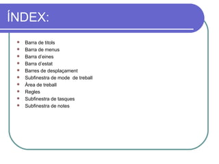 La barra de menus dona acces a totes les funcions que ofereix Power Point. Per