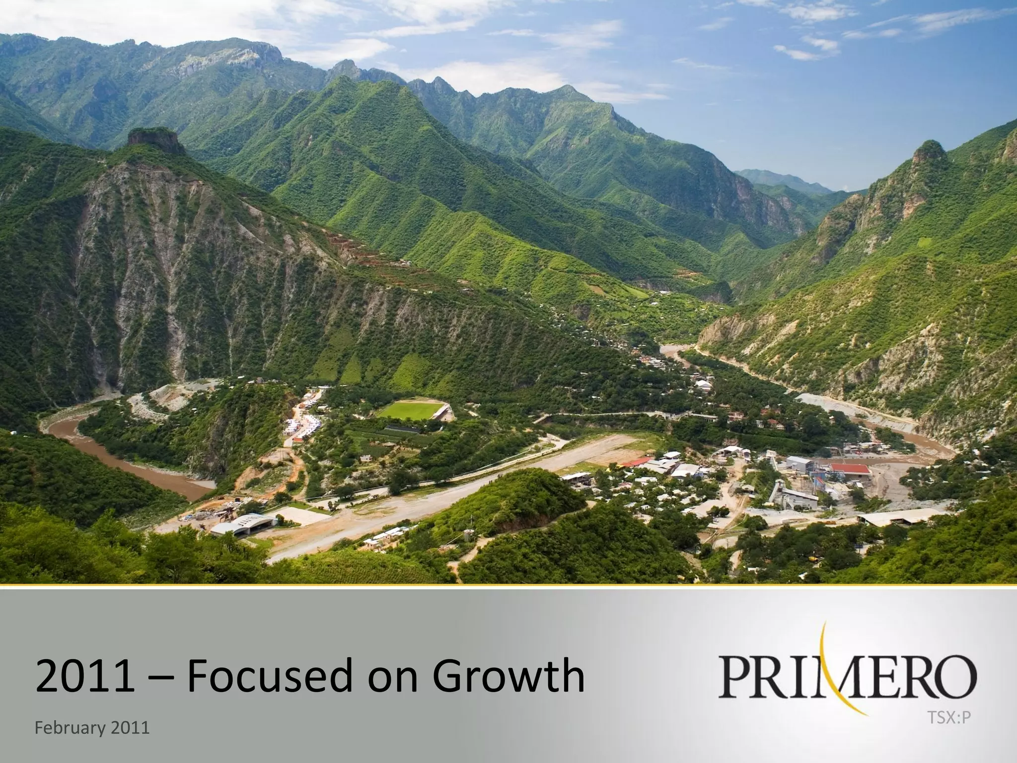 - Primero focused on growing production in 2011, targeting a 15% increase over 2010 levels to 110,000-120,000 gold equivalent ounces.
