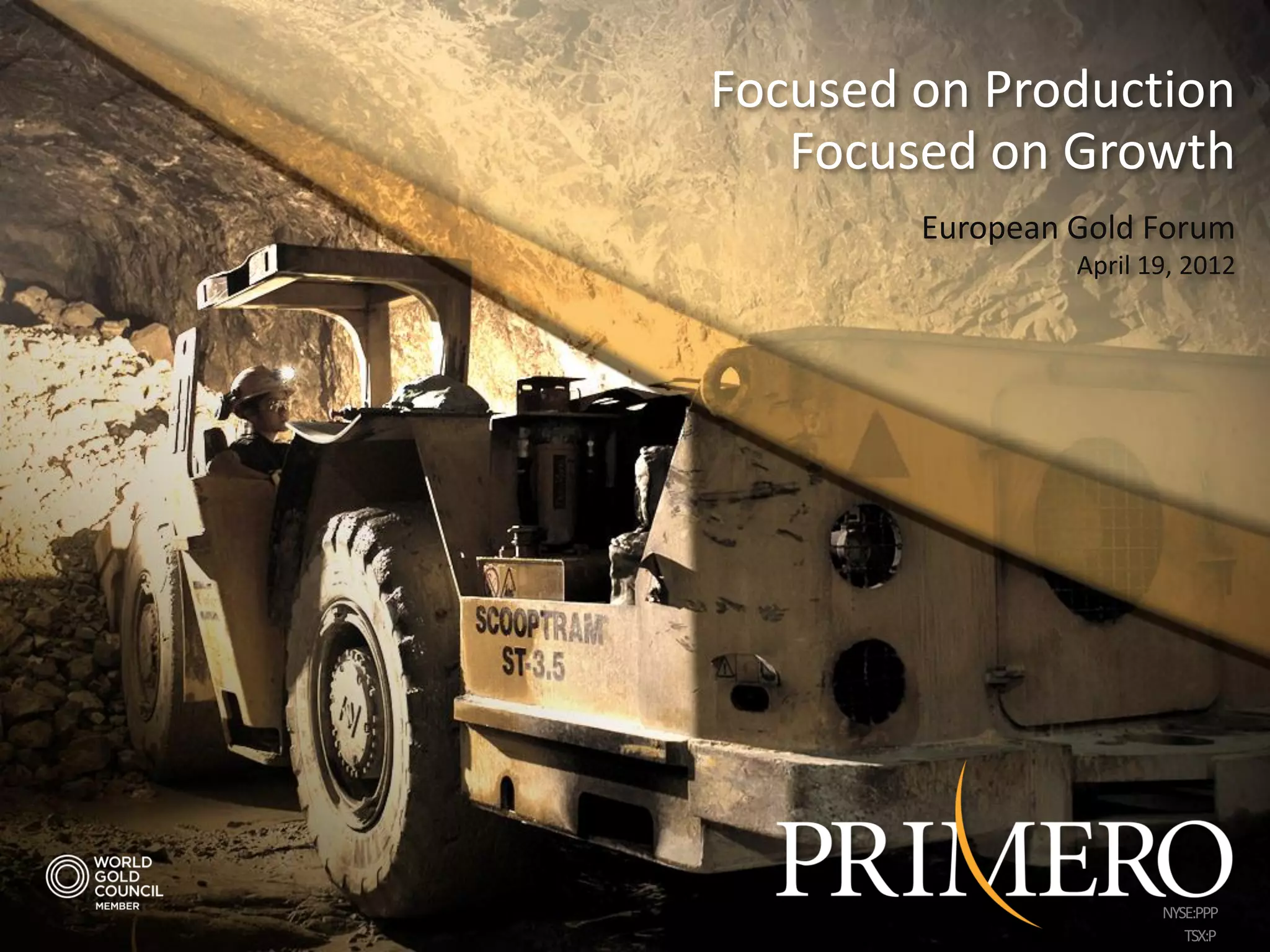 Primero Mining Corporation is focused on production and growth. At its San Dimas gold-silver mine in Mexico, the company aims to maximize throughput, control costs, optimize grade, and accelerate mine development. Its goal is to expand San Dimas production to approximately 200,000 gold equivalent ounces annually and become an intermediate gold producer. Primero will pursue this objective through organic growth at San Dimas and expansion through acquisitions in the Americas.