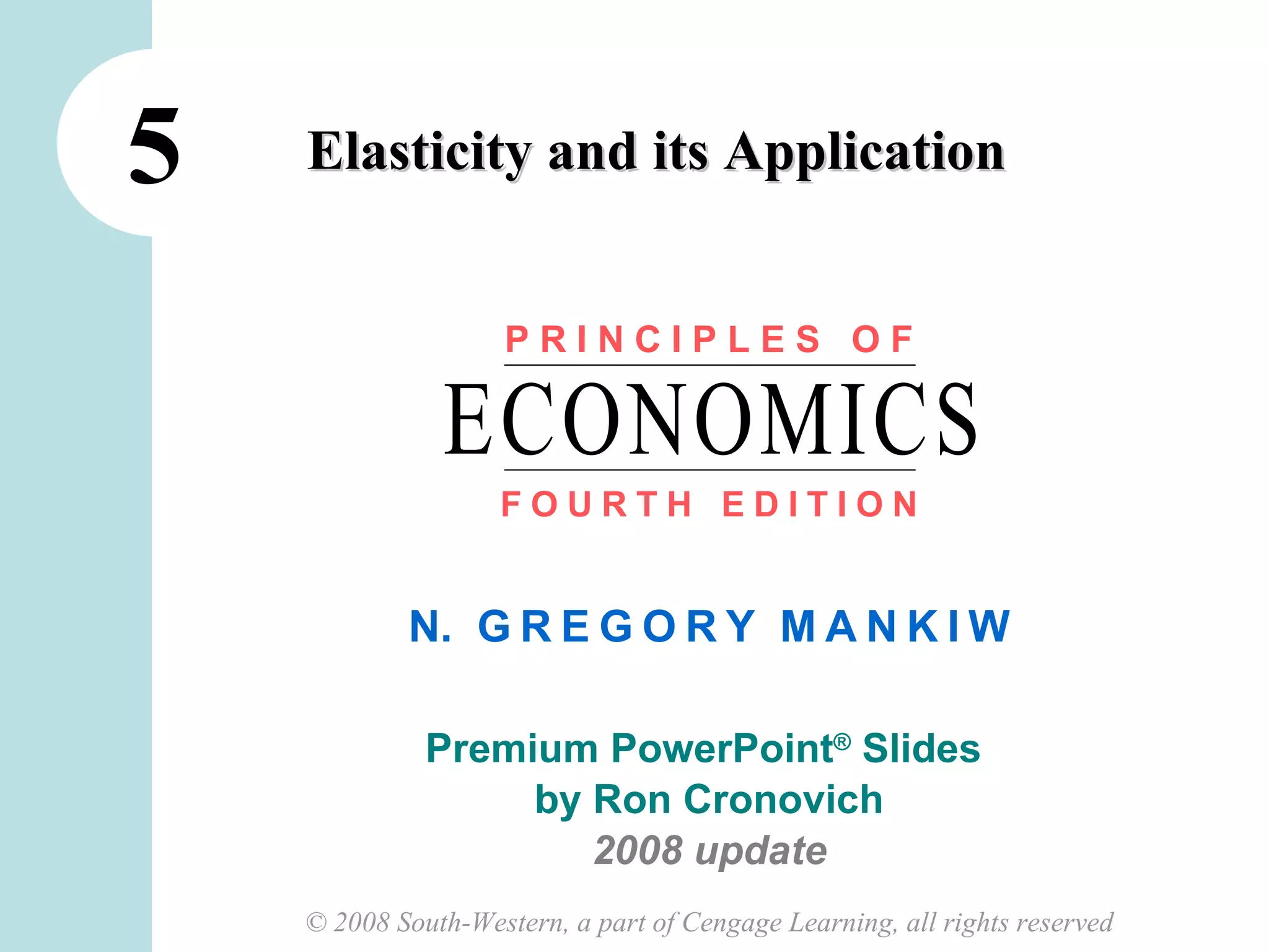 This chapter discusses elasticity, which measures how responsive one variable is to changes in another variable. It focuses on price elasticity of demand, which measures how much quantity demanded responds to changes in price. Price elasticity is calculated as the percentage change in quantity divided by the percentage change in price. Examples are used to illustrate factors that determine whether demand is elastic or inelastic, such as availability of substitutes. The elasticity also depends on whether a good is a necessity. The chapter explores how elasticity is related to the slope of the demand curve and total revenue.