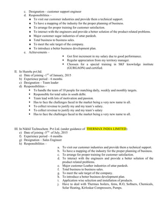 This curriculum vitae summarizes Prince Agarwal's educational qualifications and professional experience. He has a B.Tech in Chemical Engineering from Anand Engineering College in Agra. His career objective is to work in dynamic fields that create value for organizations and society. He has over 3 years of work experience in sales and business development roles in various companies dealing in engineering products and renewable energy solutions. His responsibilities have included technical support, meeting sales targets, and developing business strategies. He is interested in sales and marketing and has skills in Microsoft Office, C programming, and operating systems.