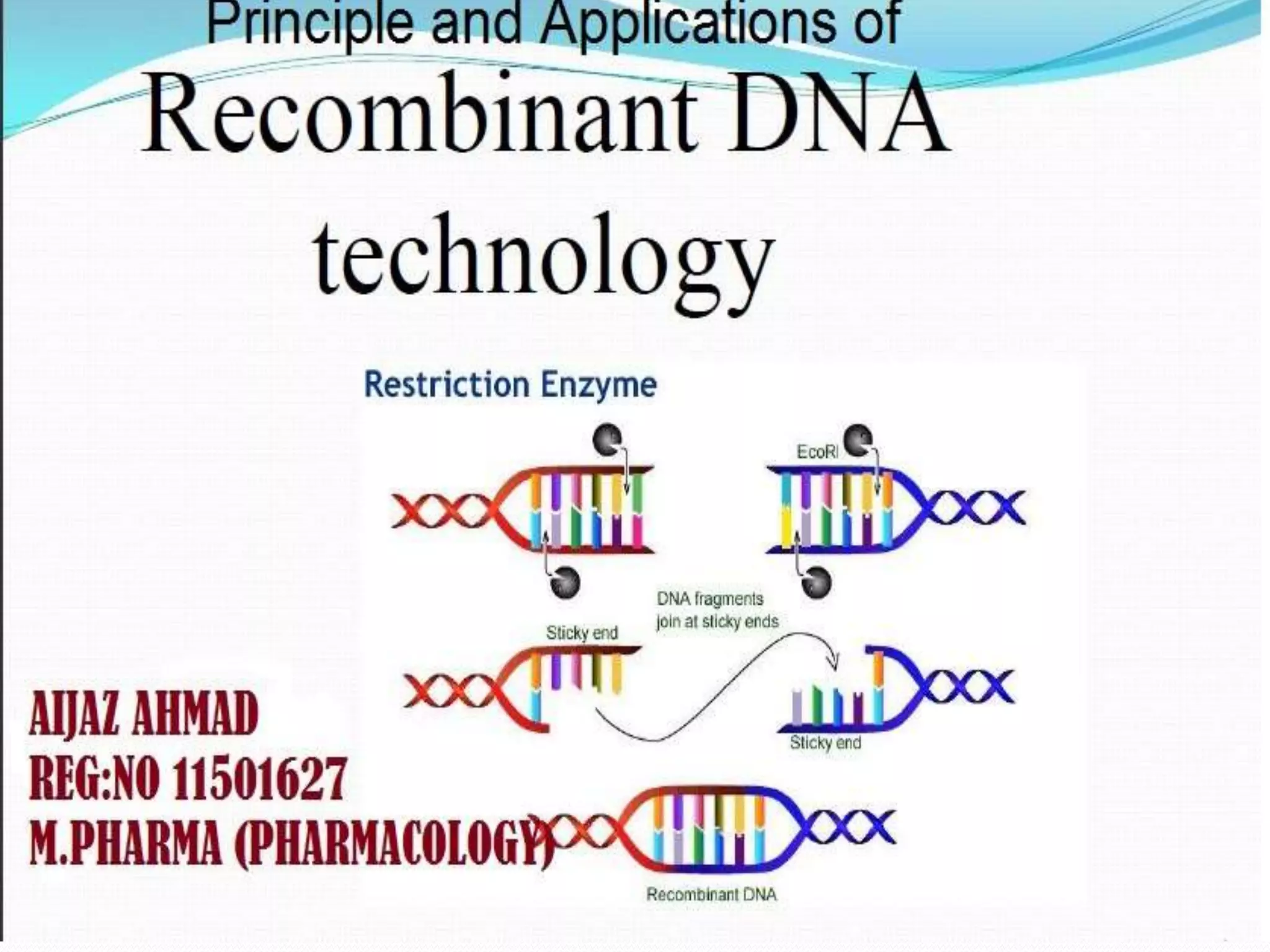Recombinant DNA technology involves combining DNA sequences from different species that would not normally occur together to create artificial DNA and alter the genetics of living cells. There are three main methods to create recombinant DNA - transformation, phage introduction, and non-bacterial transformation. Transformation involves selecting a DNA fragment, inserting it into a vector, and introducing the vector into a host cell like E. coli. Recombinant DNA technology has many applications, including producing proteins and hormones, disease diagnosis and treatment, genetically engineering plants, and forensic analysis.