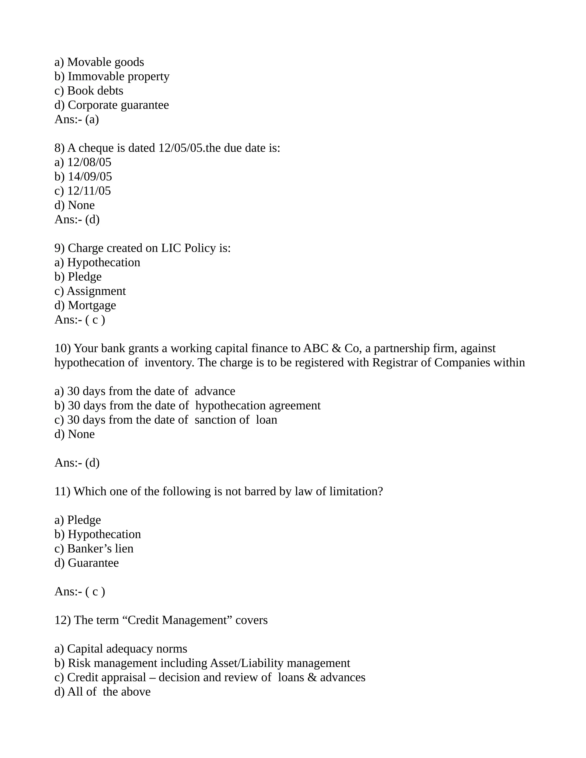 This document contains 45 multiple choice questions from a JAIIB sample paper on banking topics. The questions cover Reserve Bank of India functions, banking regulations, terms like KYC and priority sector lending, types of bank accounts and facilities, and the roles of organizations like RBI, SEBI and FIMMDA.