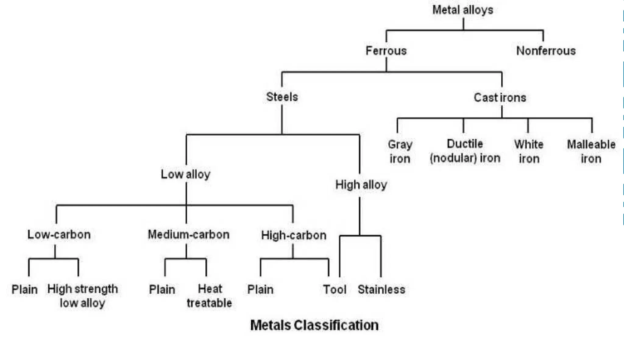 (i)Wrought iron (ii)Steels (iii) cast iron