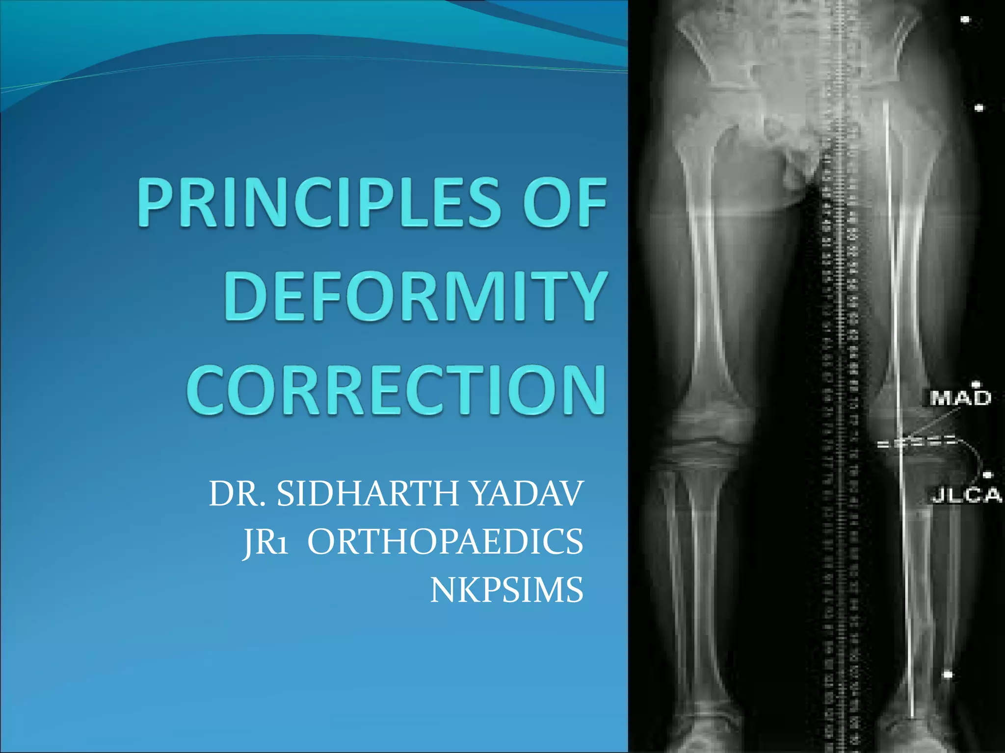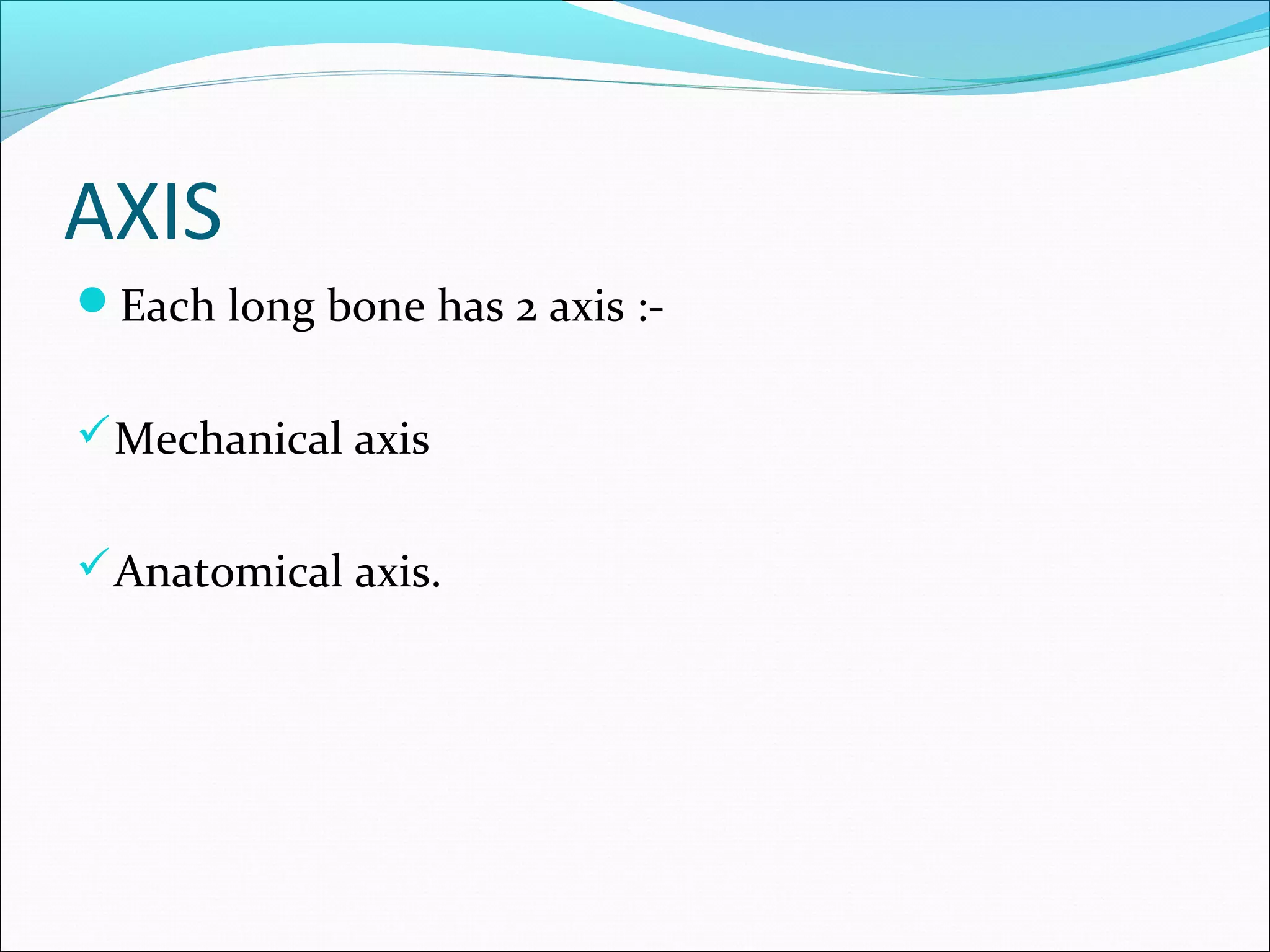 This document discusses anatomical and mechanical axes of long bones, joint center points, joint orientation lines, and how they relate to malalignment and deformities. It defines anatomical axis as the mid-diaphyseal line, which can be straight or curved, while the mechanical axis is the straight line connecting proximal and distal joint centers. Joint orientation angles are measured between these axes and joint lines. Malalignment refers to loss of collinearity between hip, knee, and ankle axes. The center of rotation of angulation (CORA) method is described to plan correction of angular deformities.