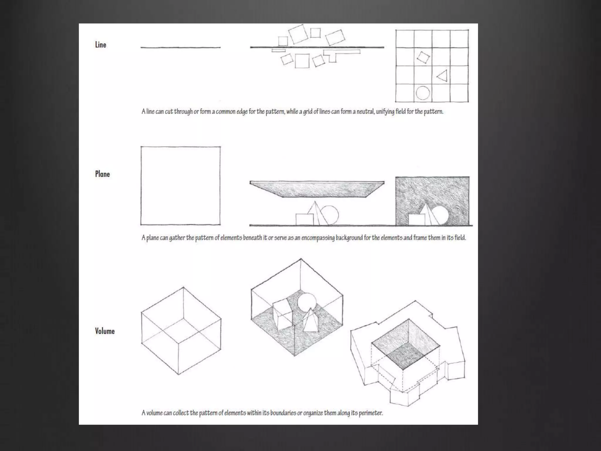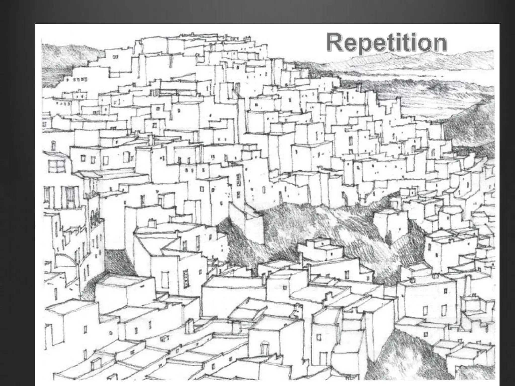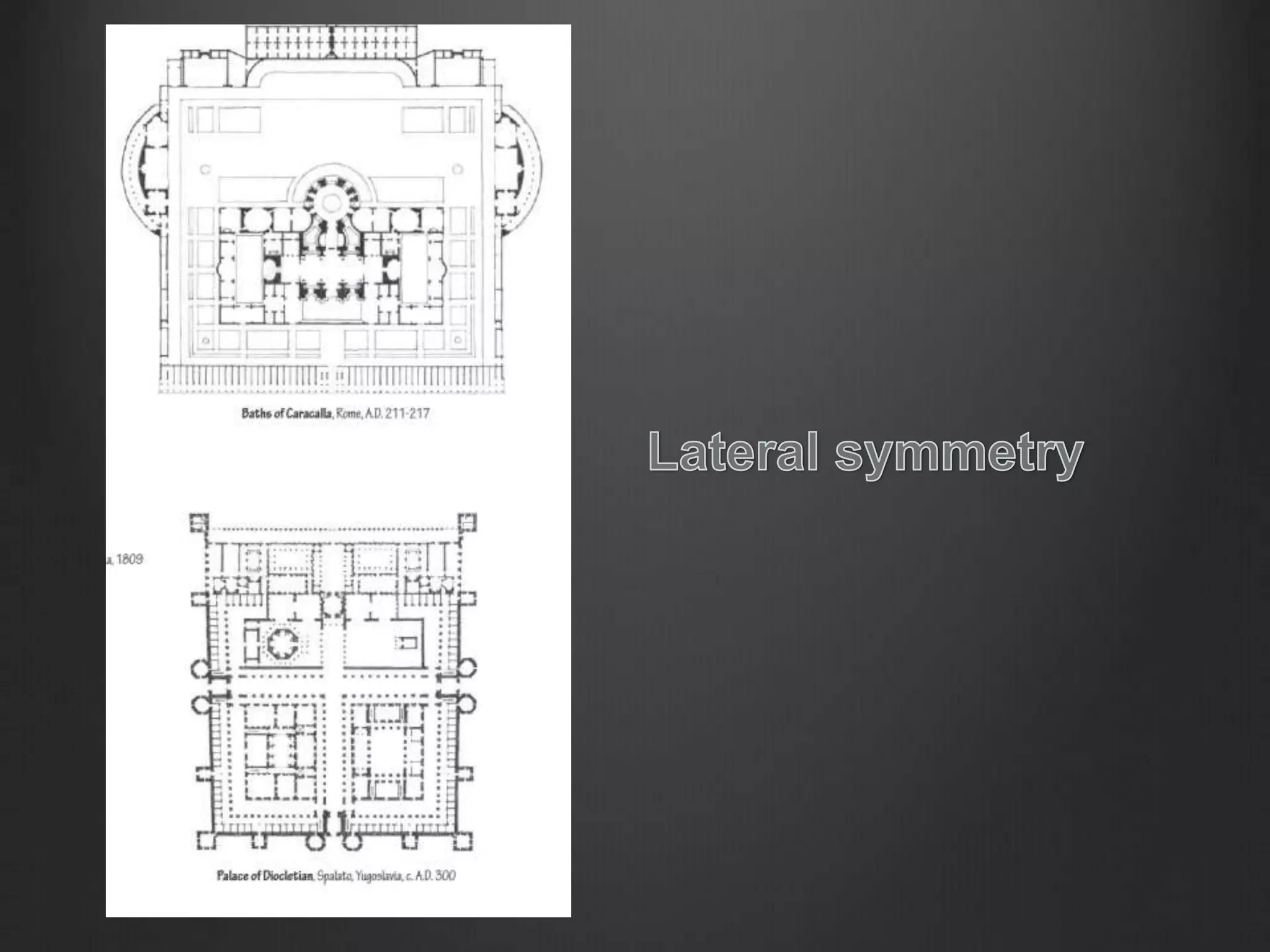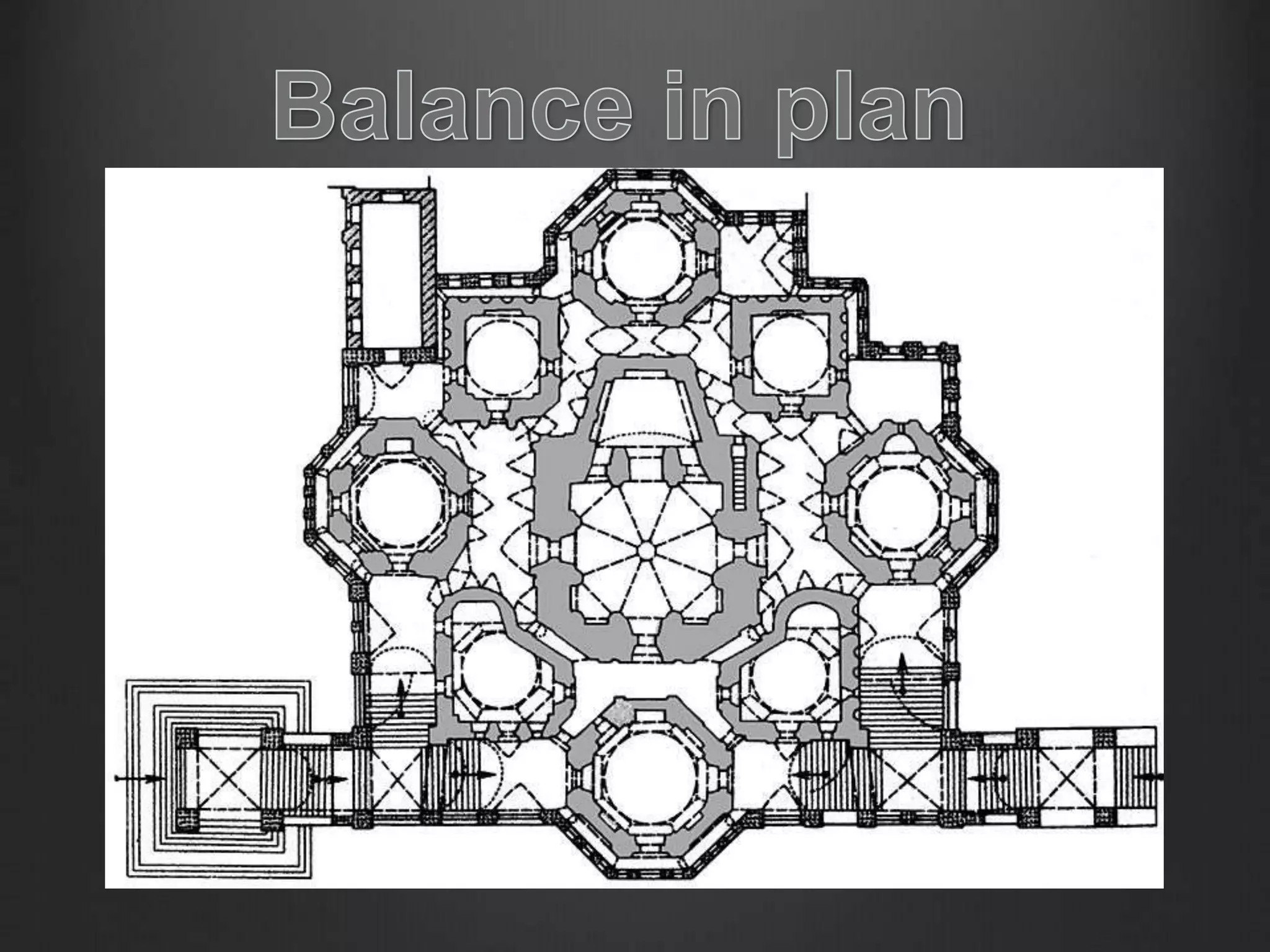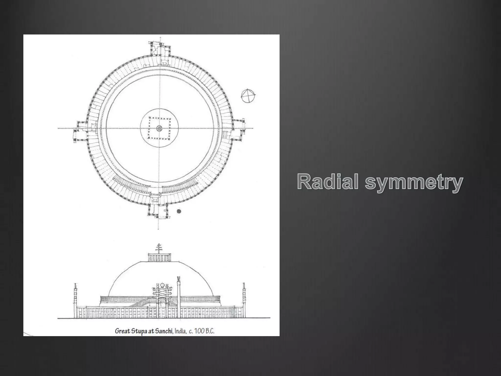 The document discusses key principles of design including proportion, scale, balance, rhythm, symmetry, hierarchy, and axis, emphasizing the mathematical relationships and aesthetic rationales behind architectural forms. It highlights the significance of the golden ratio and the Fibonacci sequence in nature and historical context, as well as the role of human dimensions in creating functional and visually appealing spaces. Additionally, it explores the importance of unity, harmony, emphasis, and dominant elements in architectural compositions.