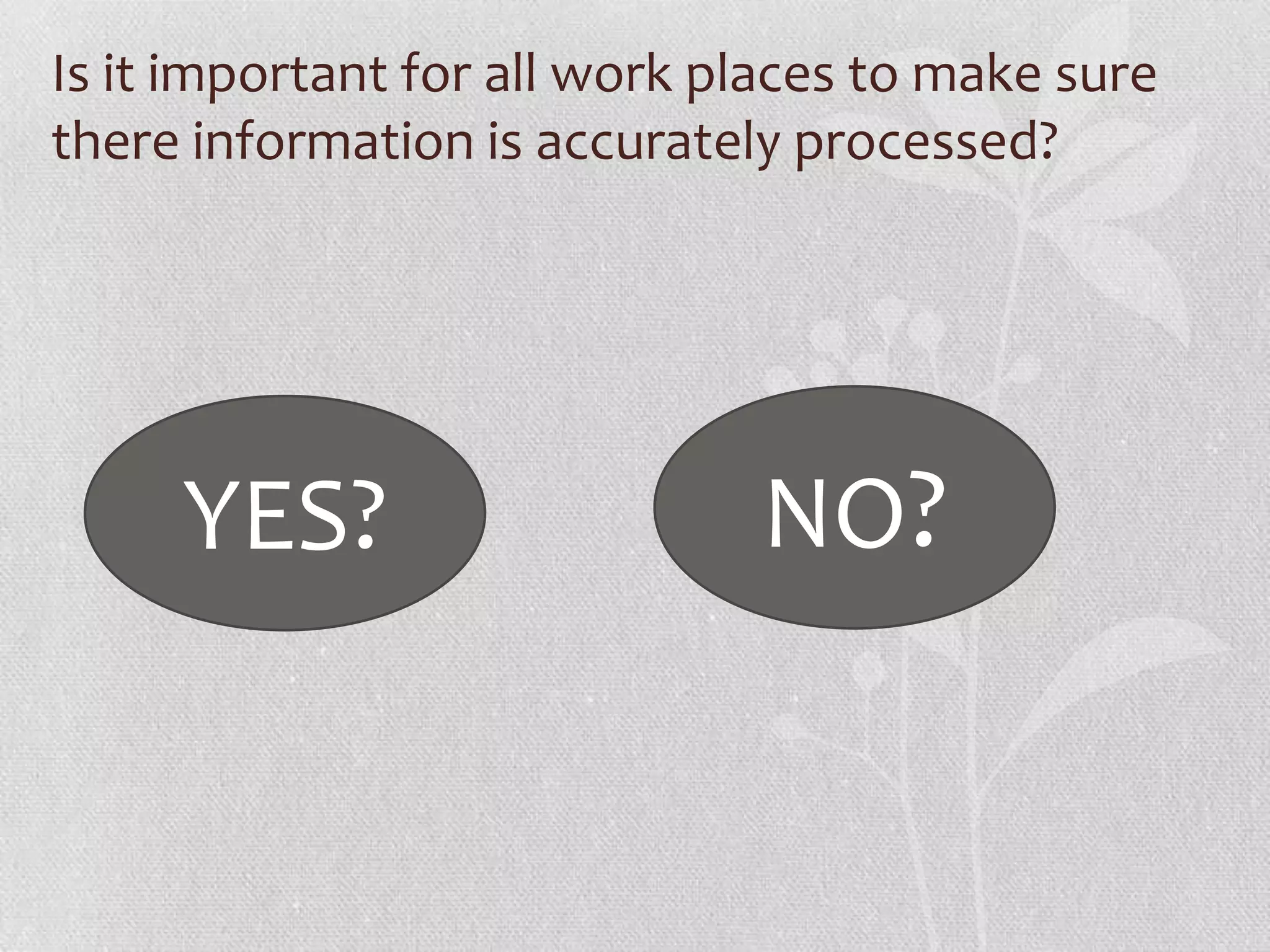 1) It is important for workplaces to ensure information is accurately processed to avoid providing false information.