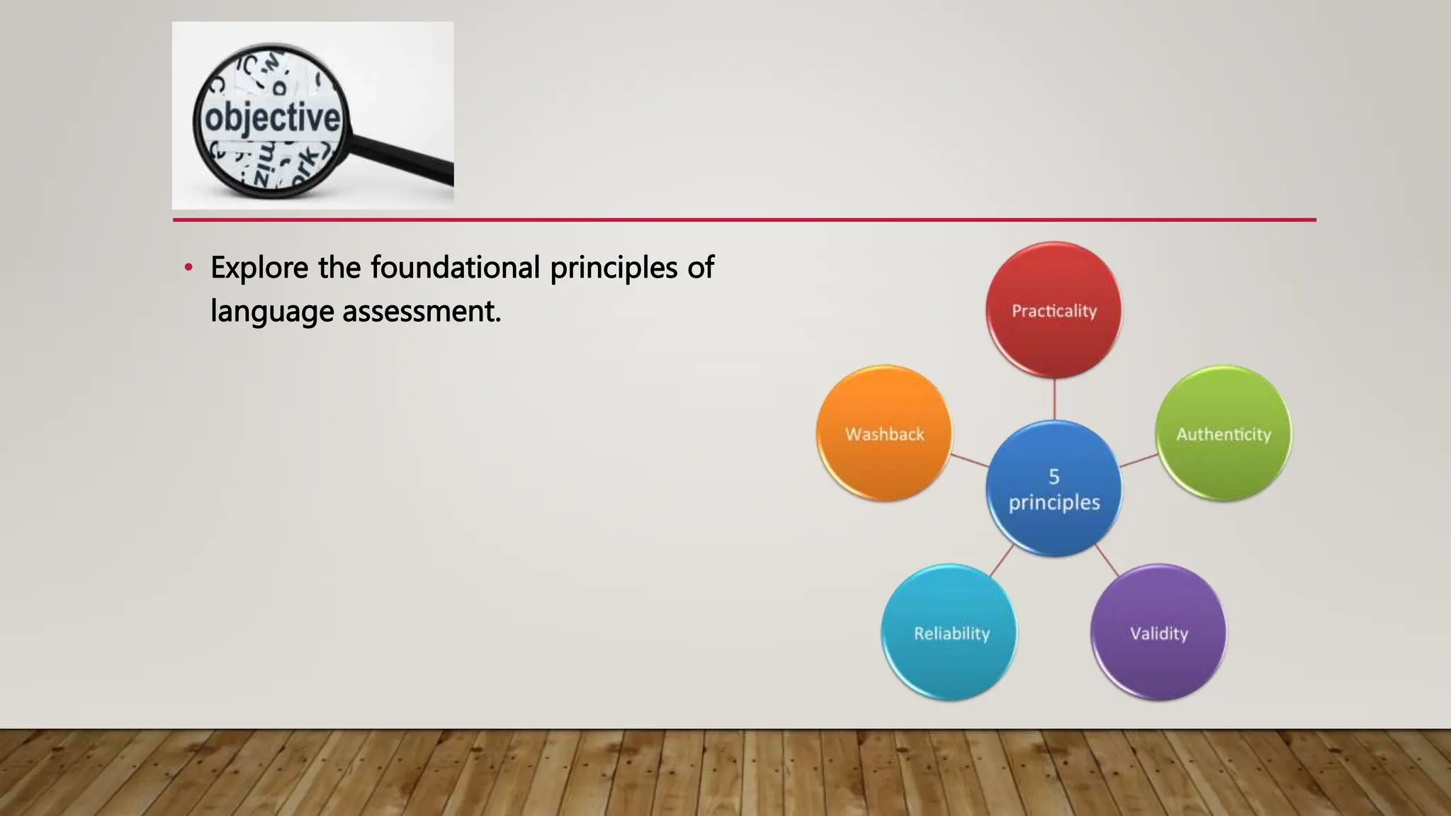 The document discusses the principles and history of standardized testing. It begins by exploring the foundations of language assessment and then describes how standardized tests originated in China in the 1880s and were later used during WWI in the US. It defines standardized tests as evaluation tools meant to provide consistent measurement of abilities. The document outlines both the advantages, like objective scoring, and disadvantages, such as potential bias, of standardized testing. It distinguishes between norm-referenced and criterion-referenced tests and emphasizes the importance of test specifications and representativeness.