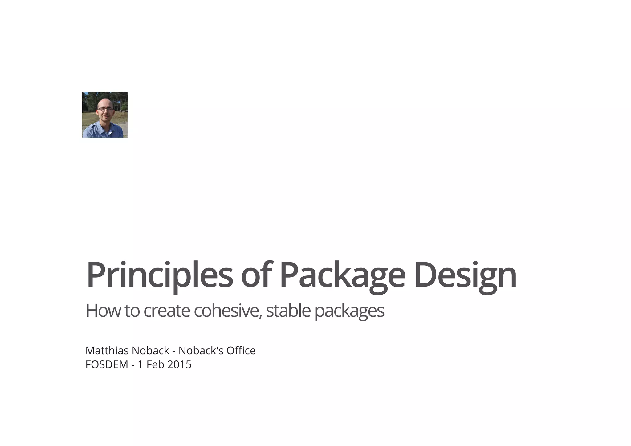 The document outlines key principles of package design, emphasizing cohesion, coupling, and stability in software development. It highlights six core principles: the release reuse equivalence principle, common reuse principle, common closure principle, acyclic dependencies principle, stable dependencies principle, and stable abstractions principle. The author advises balancing these principles when designing packages to enhance code maintainability and usability.