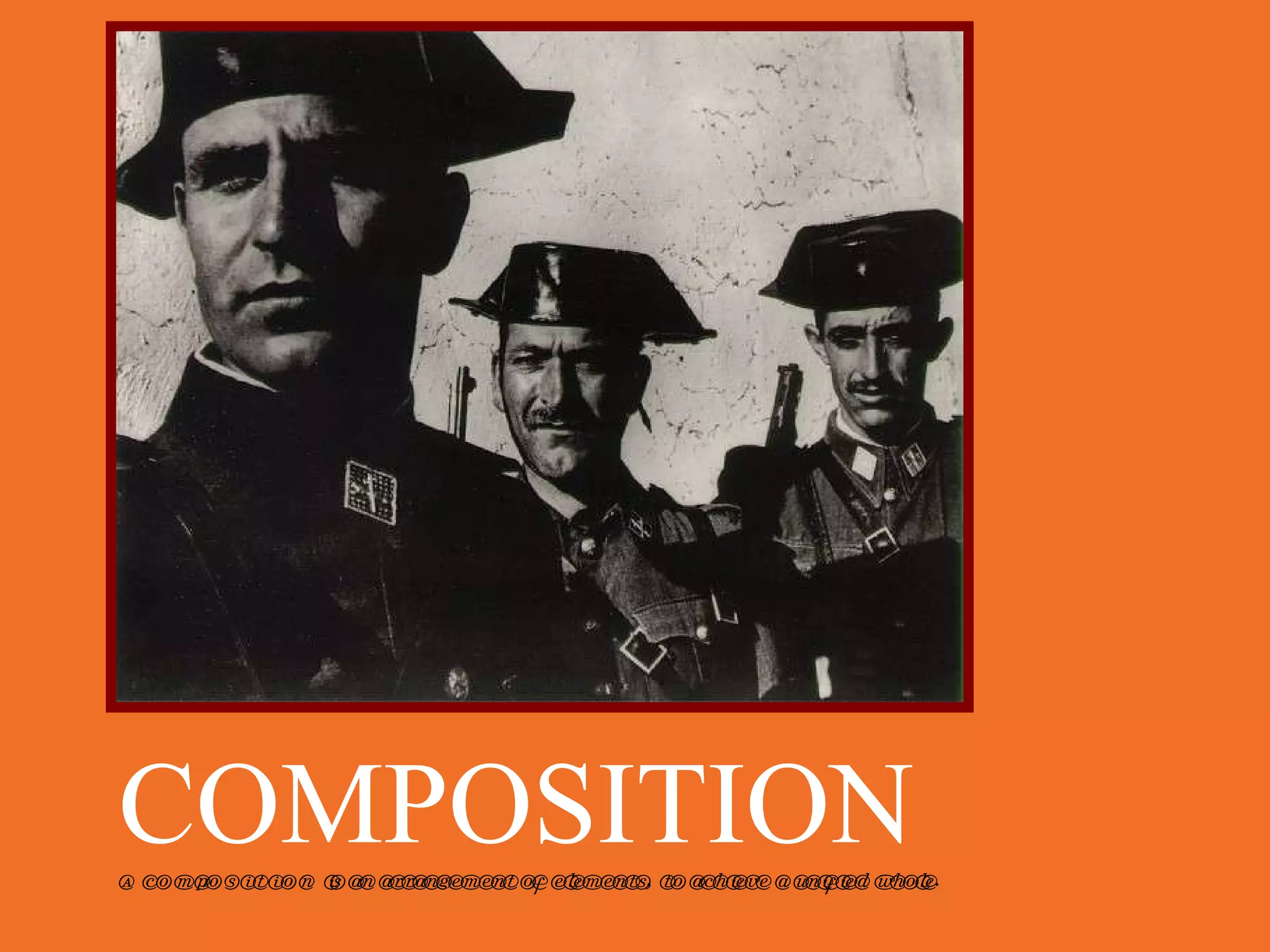 The document discusses various compositional principles for arranging visual elements including unity and variety, balance, rhythm, emphasis, proportion and scale. It defines key compositional terms like dominant element, sub-dominant element, and subordinate element. It also covers the rule of thirds and use of the golden ratio for effective composition.