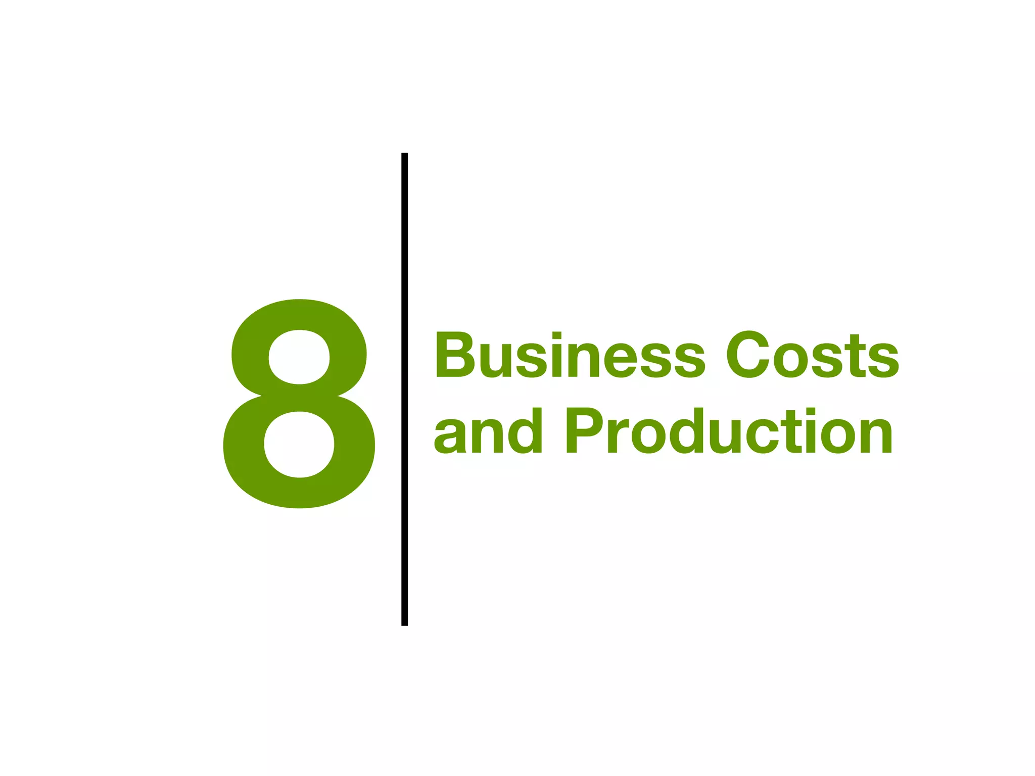 The document discusses business costs and production from an economics perspective. It defines various types of costs that firms face, including explicit costs, implicit costs, variable costs, fixed costs, average costs and marginal costs. It explains how profits are calculated, considering both accounting profits and economic profits. It also examines the production process, discussing the production function and concepts of diminishing marginal productivity that influence cost curves.