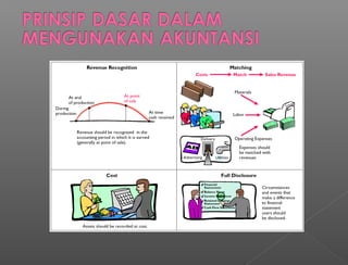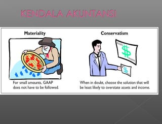 Dokumen ini membahas prinsip akuntansi yang berlaku umum serta kerangka kerja konseptual yang meliputi tujuan pelaporan keuangan dan karakteristik kualitatif informasi akuntansi. Pembaca diharapkan dapat menjelaskan asumsi dasar, prinsip, serta kendala dalam akuntansi, termasuk penerapan prinsip dalam operasi internasional. Selain itu, dokumen ini menjelaskan pentingnya relevansi, keandalan, dan konsistensi informasi keuangan.