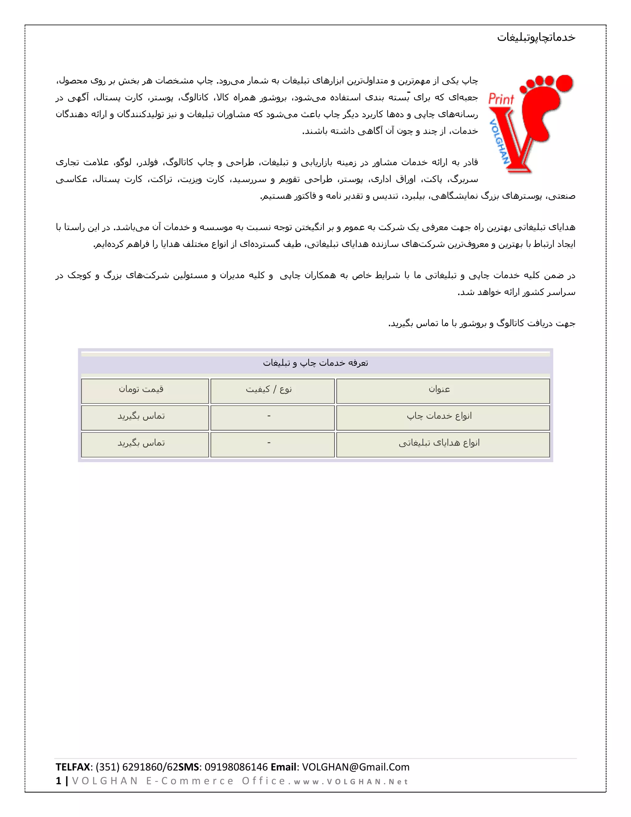 The document discusses setting up an e-commerce business called VOLGHAN E-Commerce Office that sells various products online and via telephone and fax orders. It provides contact information including an address, telephone number, fax number, SMS number, and email for placing orders or inquiries. The document encourages visiting the company's website at www.VOLGHAN.Net for more information.