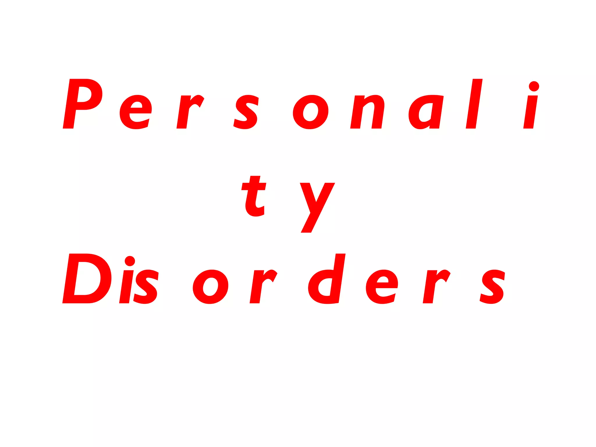 Personality disorders are characterized by inflexible and maladaptive patterns of behavior, cognition, and inner experience that deviate from a person's culture. They typically cause significant distress or impairment and can be traced back to late adolescence or early adulthood. The Diagnostic and Statistical Manual of Mental Disorders (DSM) categorizes personality disorders into three clusters based on symptomology: Cluster A includes odd/eccentric disorders like paranoid, schizoid, and schizotypal; Cluster B includes dramatic/erratic disorders like antisocial, borderline, histrionic, and narcissistic; and Cluster C includes anxious/fearful disorders like avoidant, dependent, and obsessive-compulsive. Each disorder is