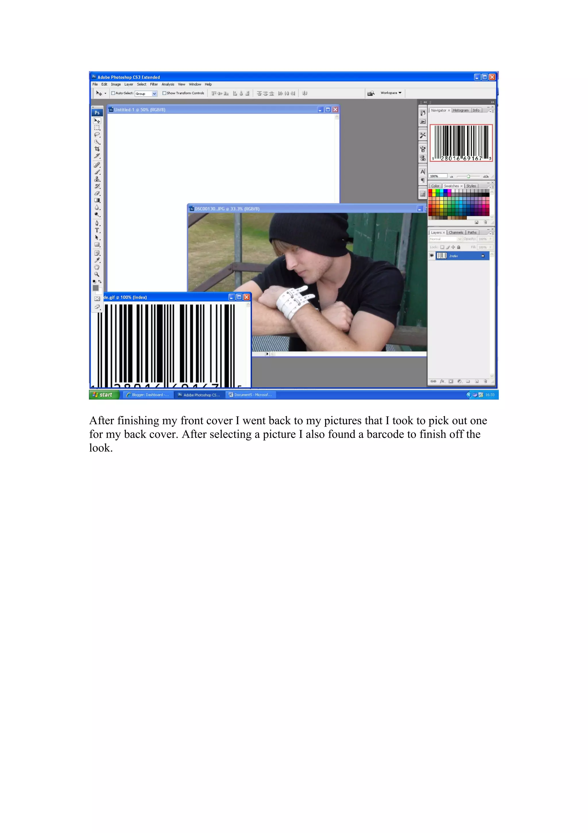 The author finished their front cover and then selected a picture from photos they had taken to use on the back cover. In addition to choosing a photo, they also picked out a barcode to complete the design of their back cover.