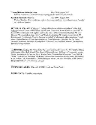 Hayley Jensen is seeking an internship in a law firm or legal department to build her skills and knowledge in the legal field. She is currently a junior at the University of Tennessee majoring in business management with a 3.67 GPA. Her long-term goal is to attend law school, obtain a law degree, and become a practicing attorney.