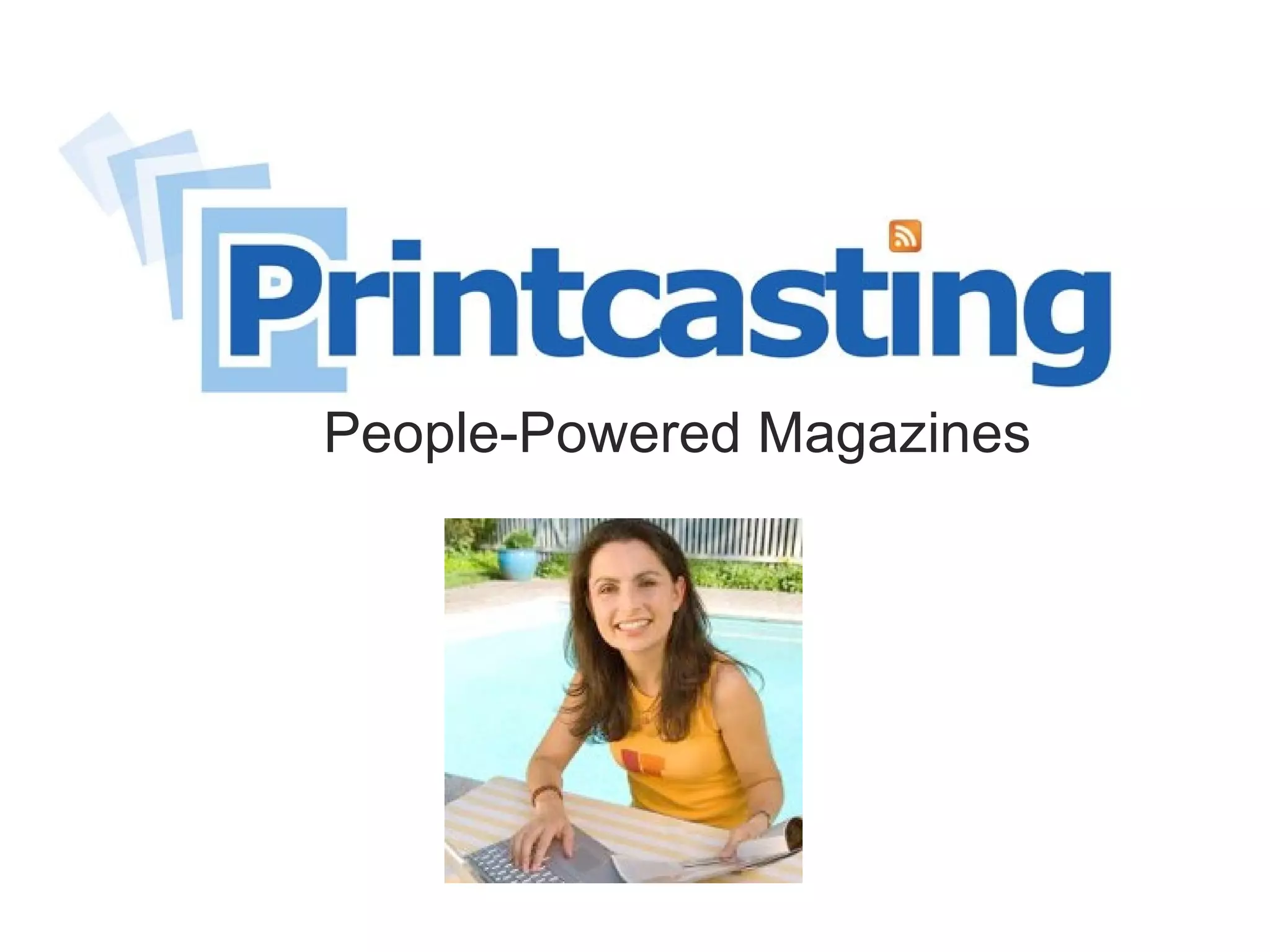 The document discusses Printcasting, a Knight Foundation project designed to democratize print publishing, particularly through community involvement in Bakersfield, California. It highlights the financial and creative potential of combining print with digital media, emphasizing audience engagement and revenue generation from user-contributed content. Additionally, it explores social media trends affecting local journalism, advocating for a niche-focused approach to meet diverse consumer preferences and adapt to evolving media landscapes.