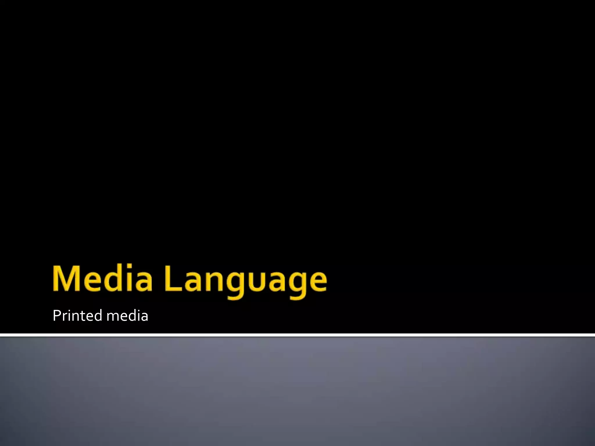 The document discusses printed media and its key elements. It focuses on text elements like font types, specifically the differences between serif and sans serif fonts. It also discusses images and color schemes as important elements. It provides examples of serif and sans serif fonts and describes when each is generally used. It emphasizes that font choice, size, and placement are important for engaging an audience.
