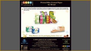 The document summarizes Labh Group, a manufacturer and exporter of printed wax coated paper for bread from India. It highlights Labh Group's state-of-the-art manufacturing facilities, stringent quality control processes, global presence in over 100 countries, and accreditations including ISO 9001-2008 certification. The document promotes Labh Group's competitive prices, excellent product quality, and customer-focused approach to developing long-term business relationships.