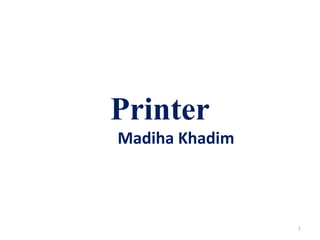 This document discusses different types of printers and factors that affect print quality. It begins by defining a printer as a hardware device that takes computer data and generates a hard copy. It then discusses how DPI, printer type, and toner quality impact print results. The document categorizes printers as either impact printers, which physically strike the paper, or non-impact printers, which create images without touching paper. Specific impact and non-impact printer types like inkjet, laser, and dot matrix are outlined and their features summarized. The document concludes by recommending printer choices for home versus business use.