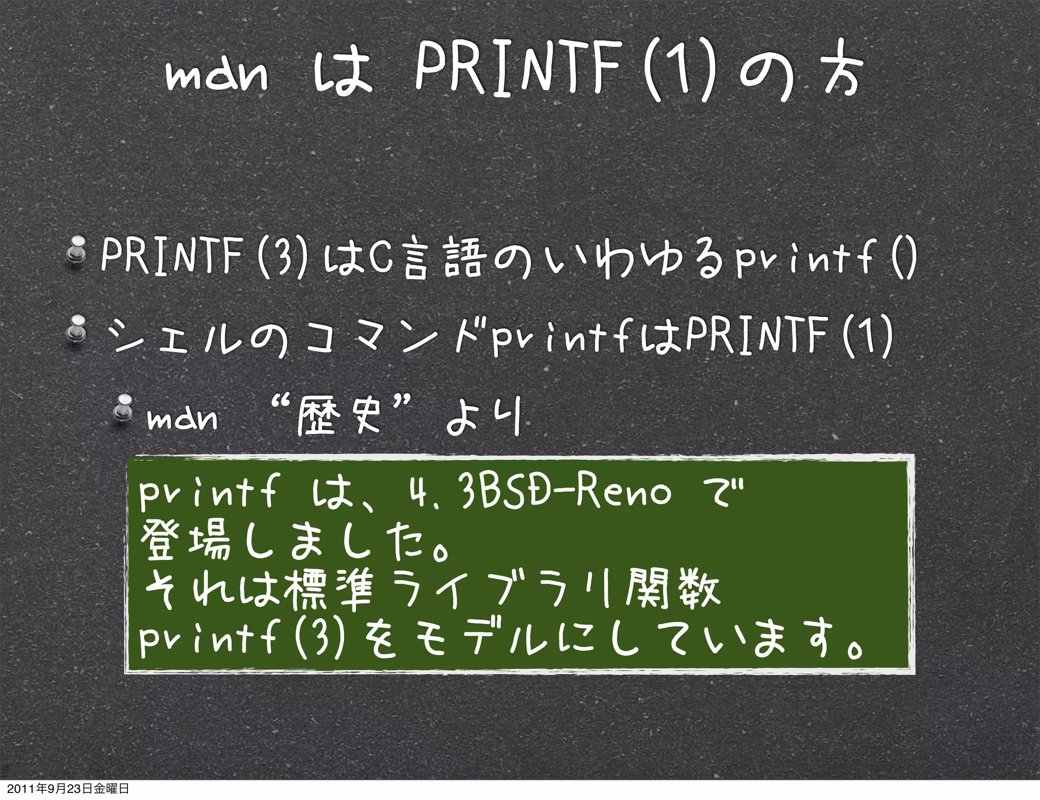 The document describes code for formatting output in C using printf formatting strings. It shows the internal functions and variables used to parse the format string and handle different conversion specifiers like %s, %f, etc. Key parts include the doformat() function which parses the format string and handles different cases, and code that writes output by calling fwrite().