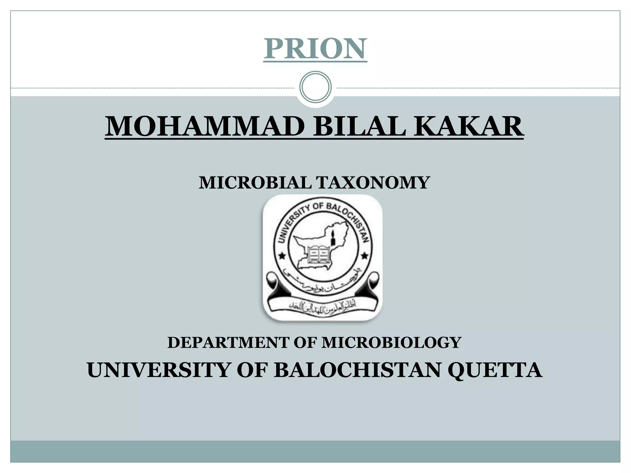 The document discusses prions, infectious protein particles linked to various diseases in humans and animals, detailing their characteristics, transmission methods, and impacts. It covers notable prion diseases such as kuru, CJD, BSE, and vCJD, their historical context, clinical signs, and preventive measures taken to control outbreaks. The document emphasizes the lack of effective treatments for prion diseases and the importance of surveillance and precautionary guidelines.