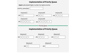 •However, in a priority queue, elements with higher priority are always served before those with