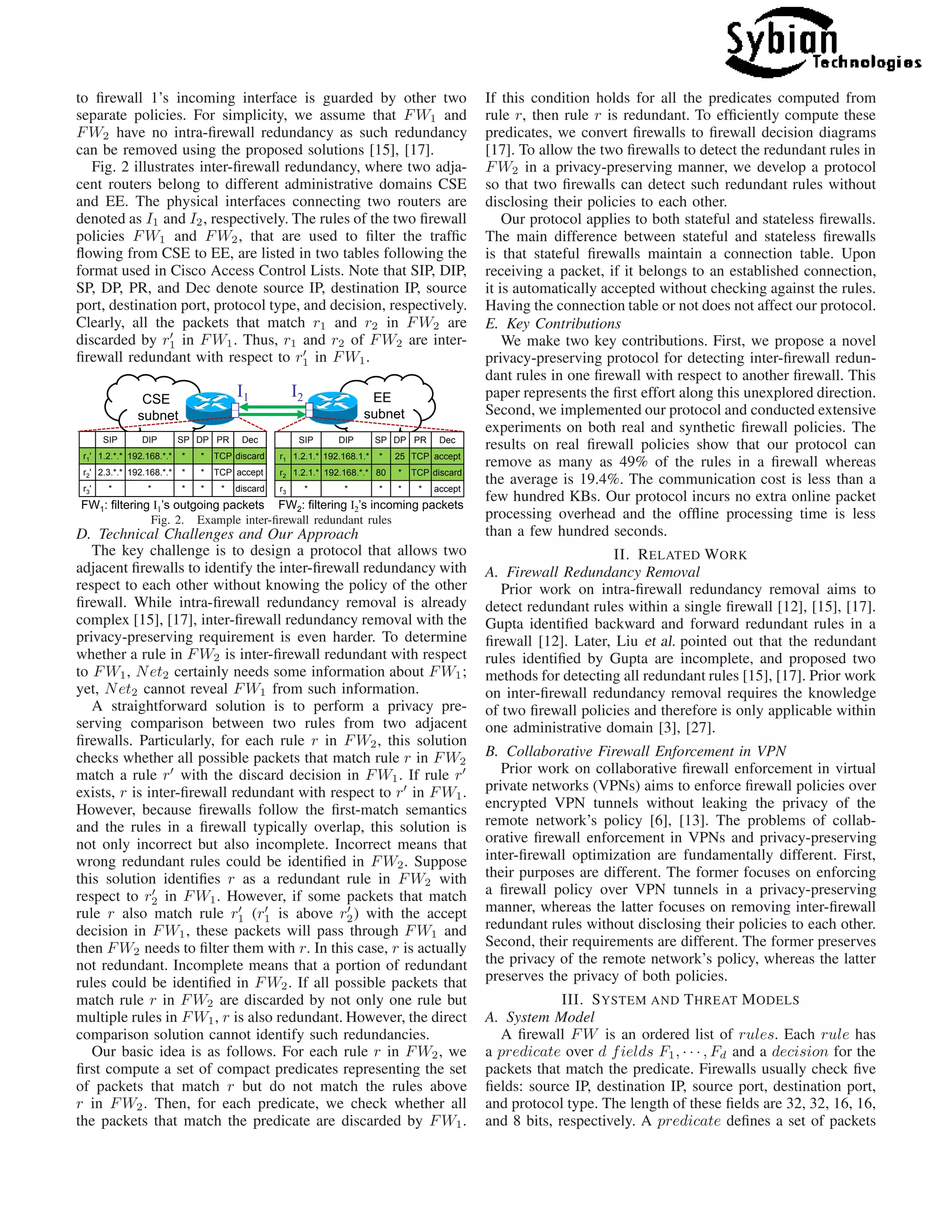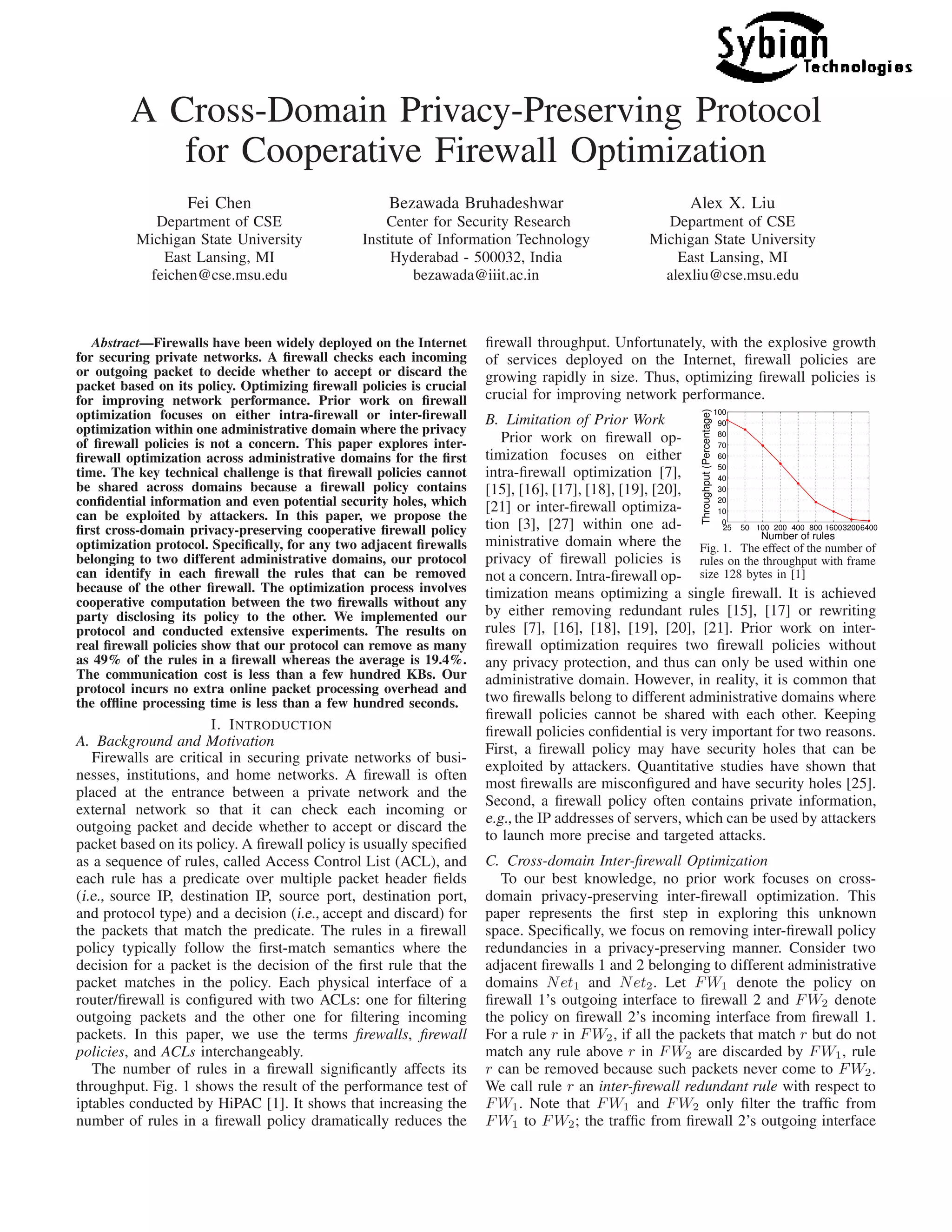 This document presents a novel cross-domain privacy-preserving protocol for optimizing firewall policies between two adjacent firewalls belonging to different administrative domains. The proposed protocol identifies redundant rules in each firewall without disclosing any confidential policy information, achieving significant rule removal (up to 49%) and maintaining low communication costs. Extensive experiments demonstrate its effectiveness, with no additional packet processing overhead and manageable offline processing times.