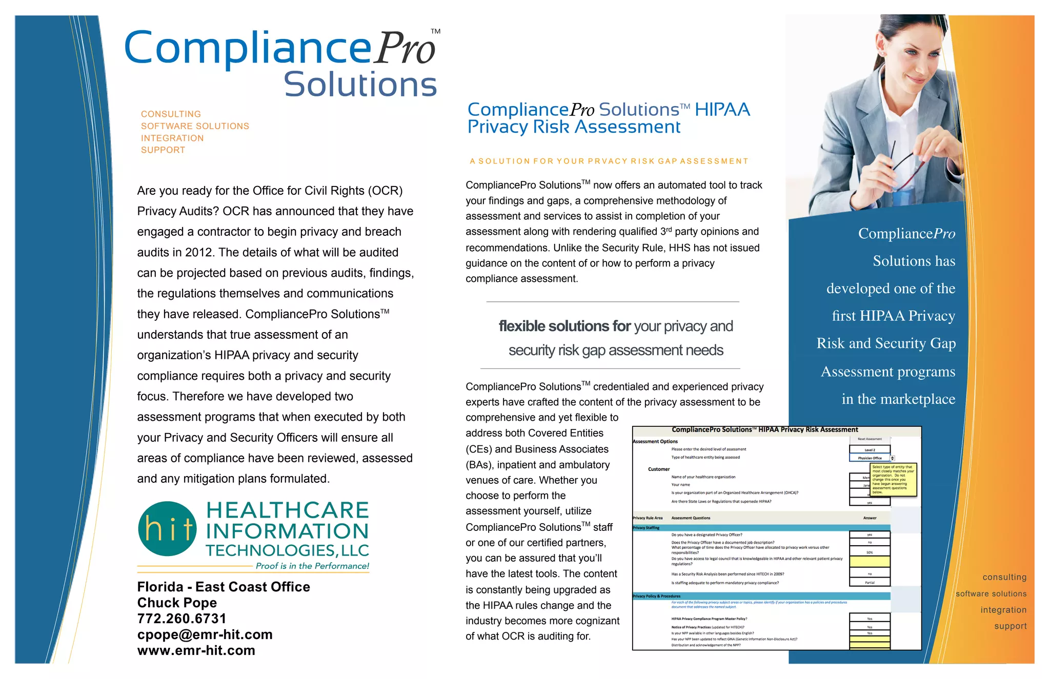 CompliancePro Solutions has developed an automated tool and comprehensive methodology to help organizations perform HIPAA privacy risk and security gap assessments. Unlike security assessments, there is no official guidance on how to perform privacy assessments. CompliancePro's experienced privacy experts have crafted an assessment that addresses both covered entities and business associates, and can be customized for different healthcare settings. The tool and content are constantly updated as HIPAA rules change. CompliancePro understands privacy and security assessments require examining both areas, so they have developed two programs to ensure all compliance areas are reviewed.
