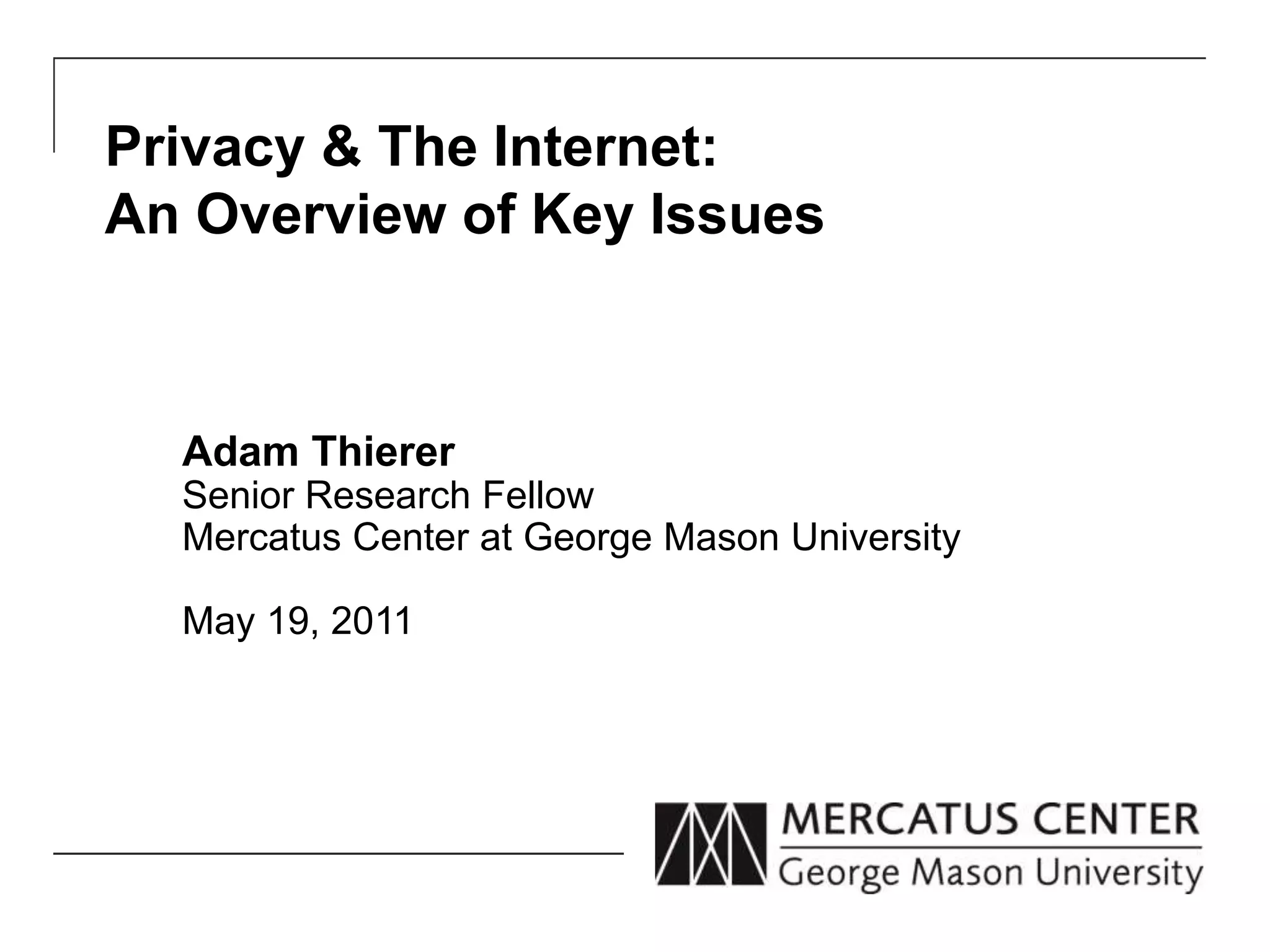 The document provides an overview of privacy issues in relation to the internet, emphasizing the complexity and varying definitions of privacy across cultures and contexts. It discusses regulatory approaches in the U.S. and E.U., the importance of trade-offs in privacy regulation, and introduces the '3-e solution' (education, empowerment, and enforcement) as a framework for addressing privacy concerns. The author argues for a more resilient approach rather than anticipatory regulation, highlighting the challenges of information control and the necessity for public awareness and corporate responsibility.