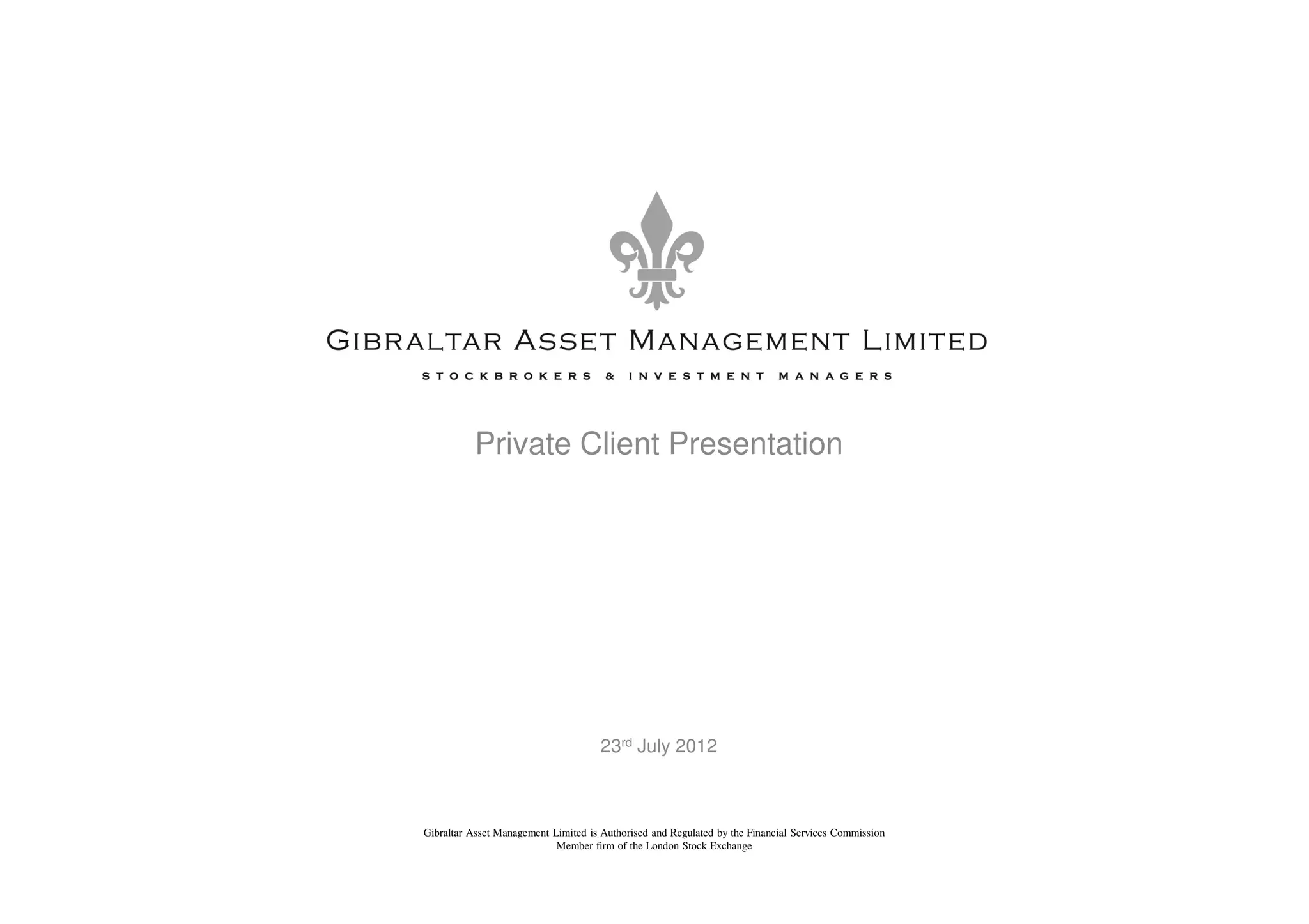 Gibraltar Asset Management provides various investment services including execution-only dealing, advisory services, and discretionary portfolio management. For discretionary clients, GAM constructs model portfolios consisting of equities, fixed income, commodities, and special situations. Equity holdings are selected based on criteria like low debt, earnings visibility, dividends, and value. Fixed income, commodities, and special situations further diversify portfolios. Clients receive regular reporting and their assets are held securely with a third-party custodian.
