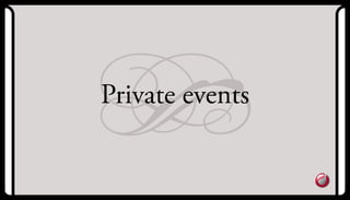 Evolve is an event planning company with over 40 years of combined experience organizing private events such as weddings, anniversaries, and birthday parties. They pride themselves on listening to clients' ideas and working to plan memorable occasions. Prior clients praise Evolve's professionalism, creativity, and ability to anticipate needs to ensure events go smoothly. Evolve's team of planners aims to go above and beyond to deliver innovative, exceptional, and stylish solutions for each event.