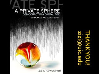 1. The document discusses how technology and digital media are blurring the lines between public and private spheres and spaces. This convergence allows for new forms of civic engagement and political participation to take place.
