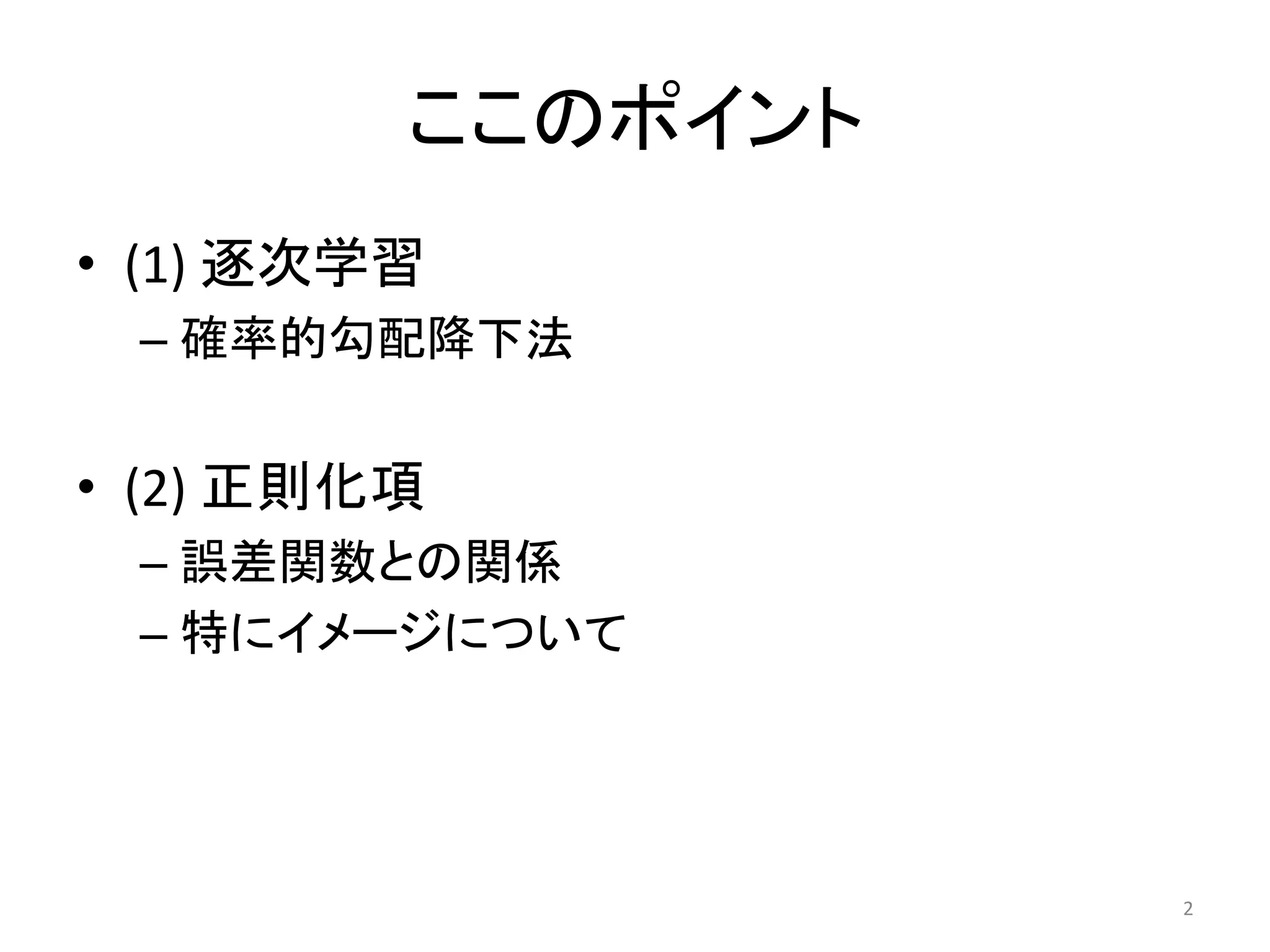 – 確率的勾配降下法 • (2) 正則化項 – 誤差関数との関係 – 特にイメージについて 2