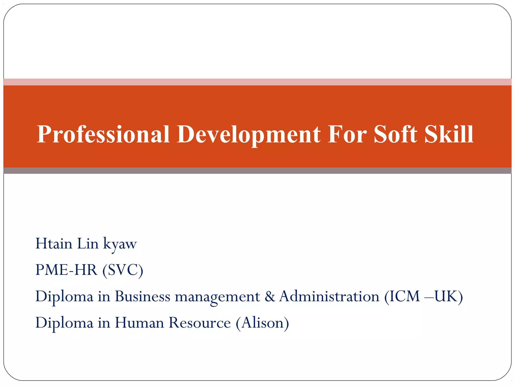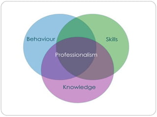 This document discusses soft skills and professional development. It discusses developing professionally through reflection, attending seminars and workshops, reading literature, and participating in training. It defines emotional intelligence as the ability to perceive, assess and manage one's own emotions and those of others. Soft skills mentioned include communication skills, teamwork, problem solving, lifelong learning, ethics and leadership. The document provides tips for improving body language, public speaking, stress management, and relationship management. It evaluates soft skills and emphasizes developing a strong work ethic, positive attitude, self-confidence, and ability to work well under pressure.