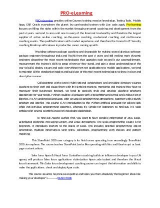 PRO-eLearning provides Online Courses Training Big Data, Testing Tools, Mobile Apps, ERP, Oracle all over the world by skilled trainers with Live code practice.